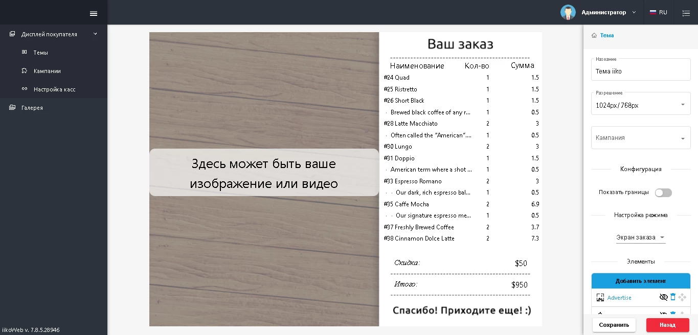 Настройка экрана покупателя в iiko